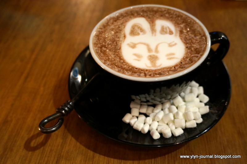 Sam ordered a cup of Hot Chocolate and Marshmallow ($6.50) and she asked whether they can do Choco Art on her drink. Got a positive answer and her cup of hot chocolate was served with a Bunny Art on top and marshmallow by the sides on the saucer.